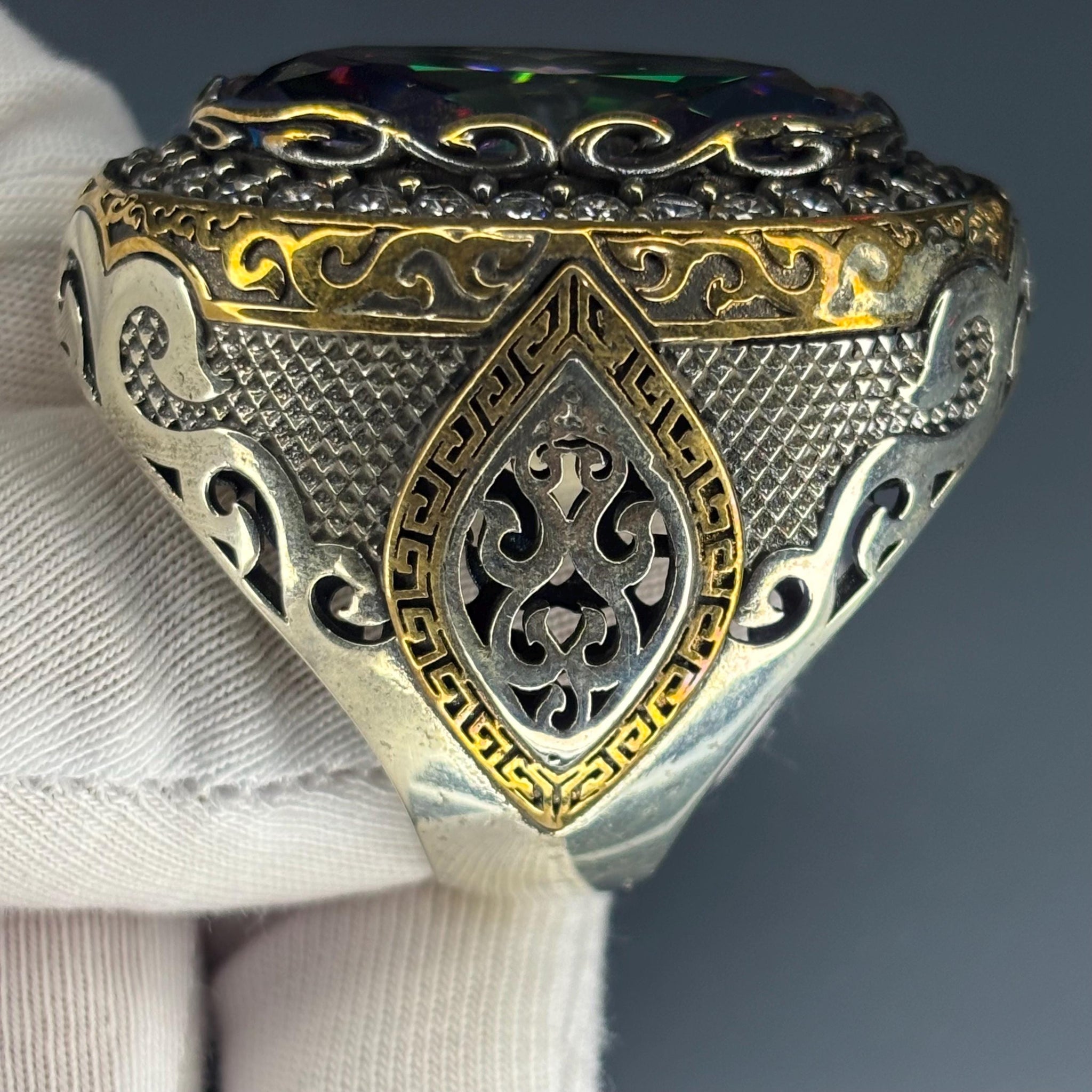 ⚙️ Material: Made from high-quality 925 sterling silver with gold-tone accents and detailed antique engraving