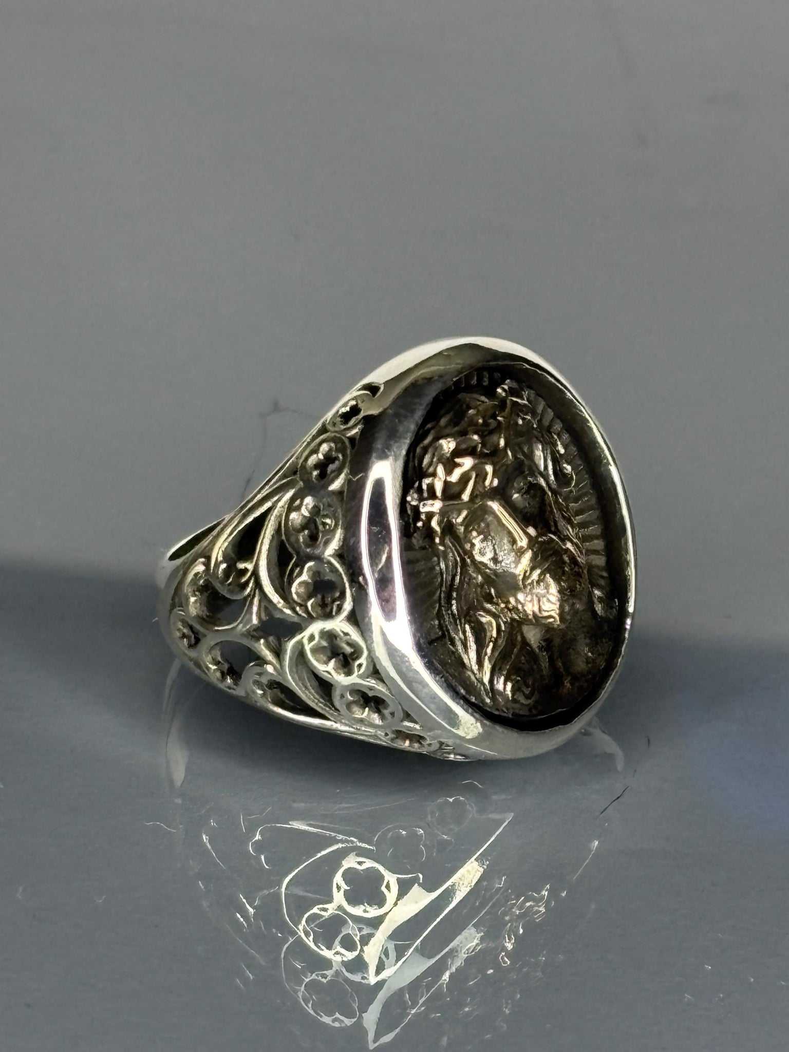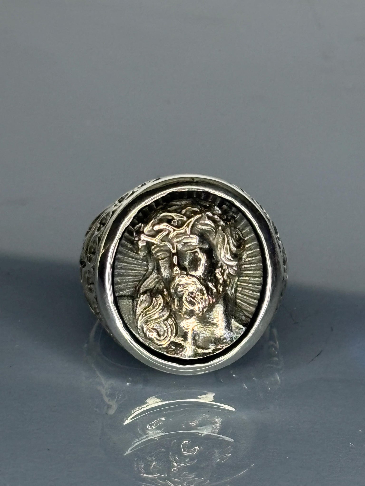 Handcrafted Sterling Silver Jesus Ring: Vintage Crown of Thorns Christian Jewelry