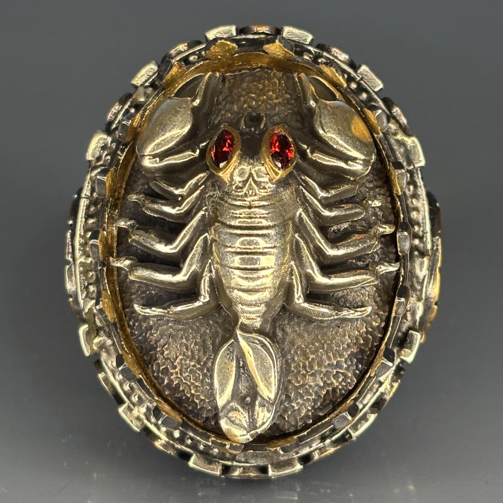 This extraordinary 925 sterling silver ring is a masterpiece of wearable art, sculpted into a fierce and powerful Scorpion. Highlighted with rich bronze accents and featuring piercing Ruby eyes, this piece is a testament to masterful artisan craftsmanship and powerful symbolism.