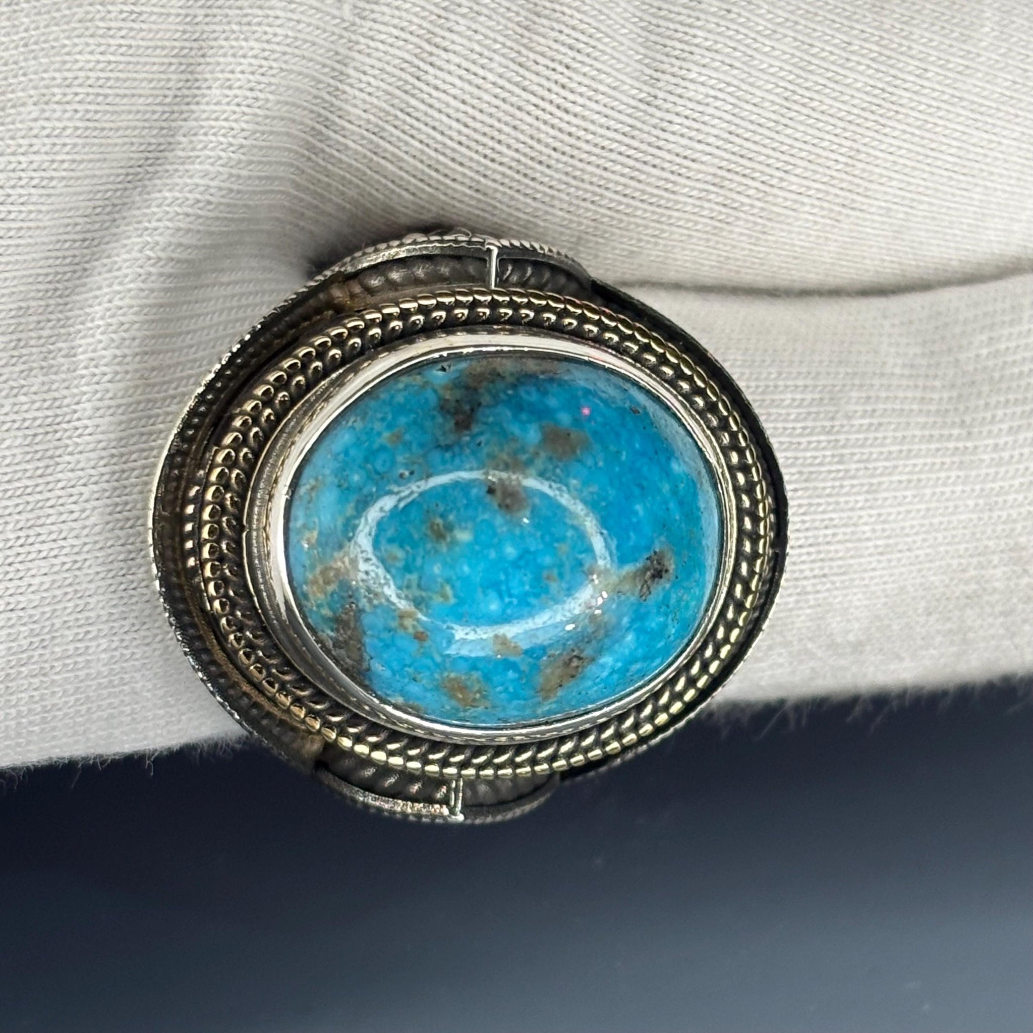 💎 Authentic Turquoise Gemstone: Features a large, oval cabochon Turquoise with a vibrant blue hue and natural matrix, embodying the timeless beauty of the earth.