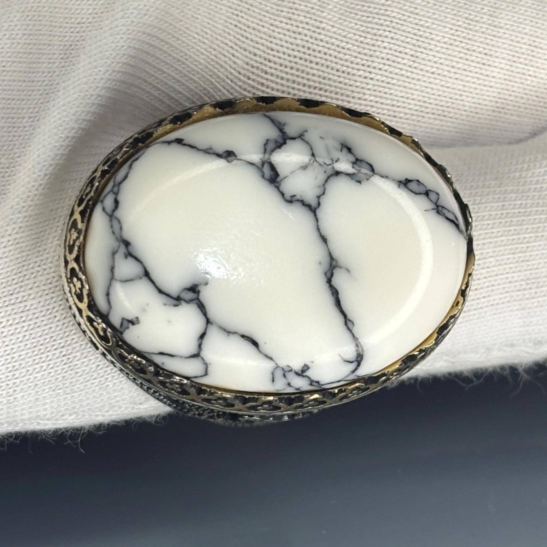 💎 Features a magnificent, large White Turquoise stone with natural black veining, offering a unique and earthy appeal.
