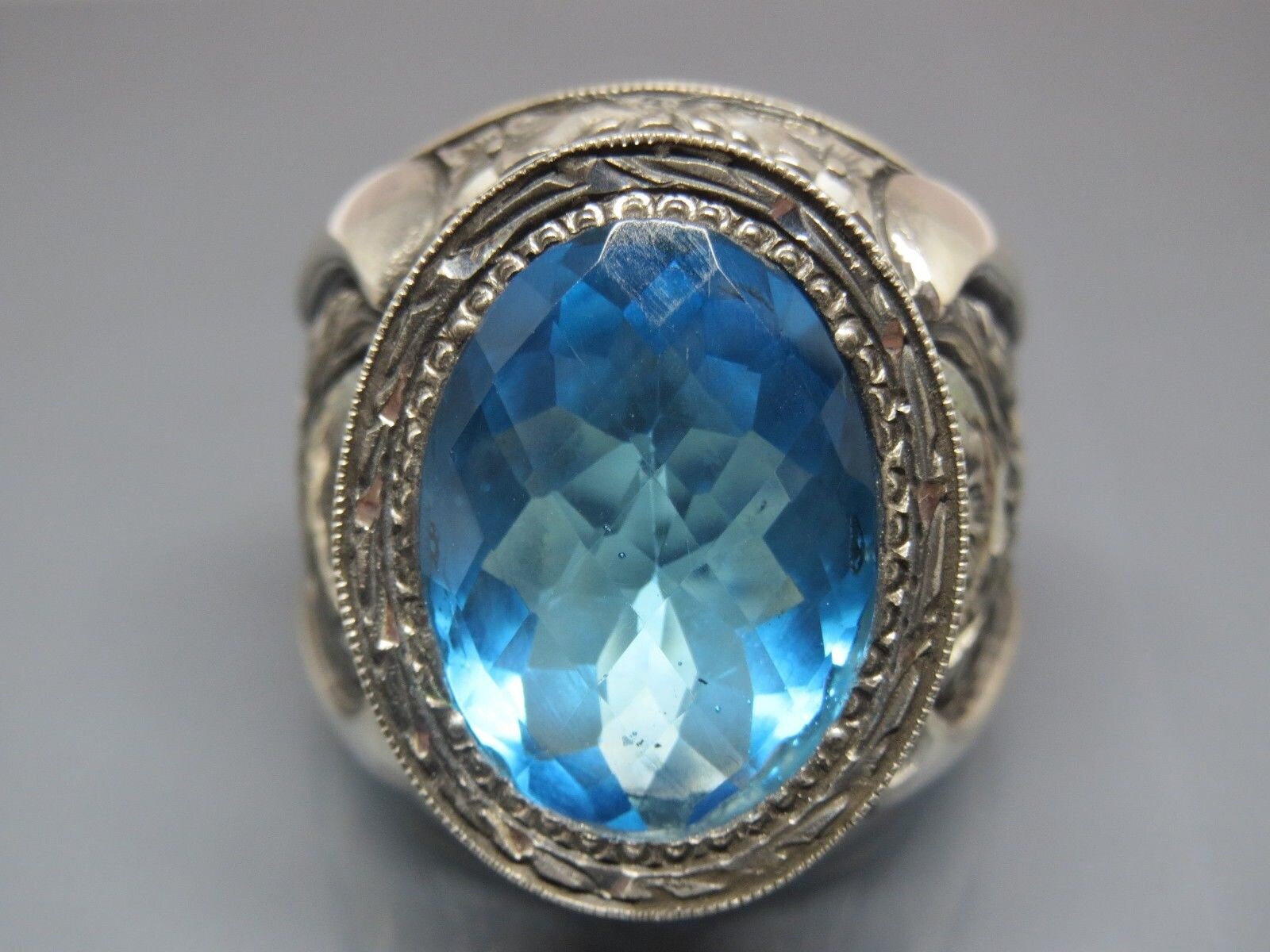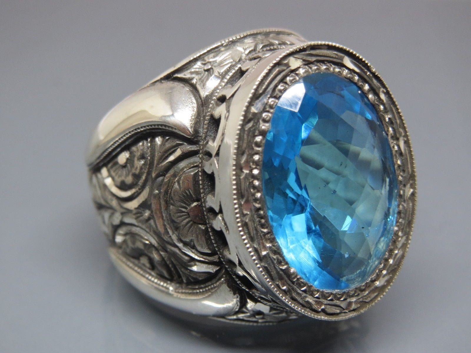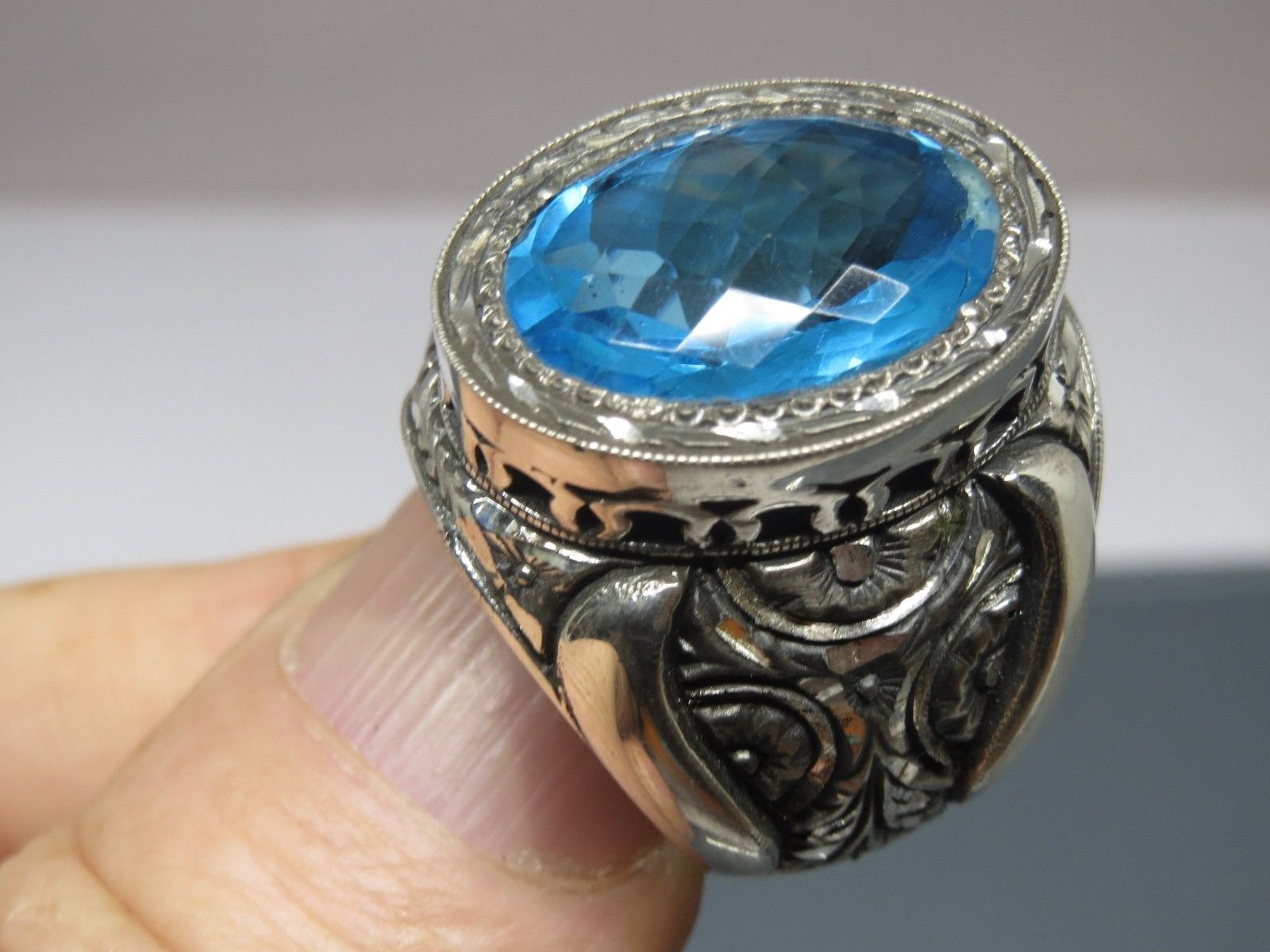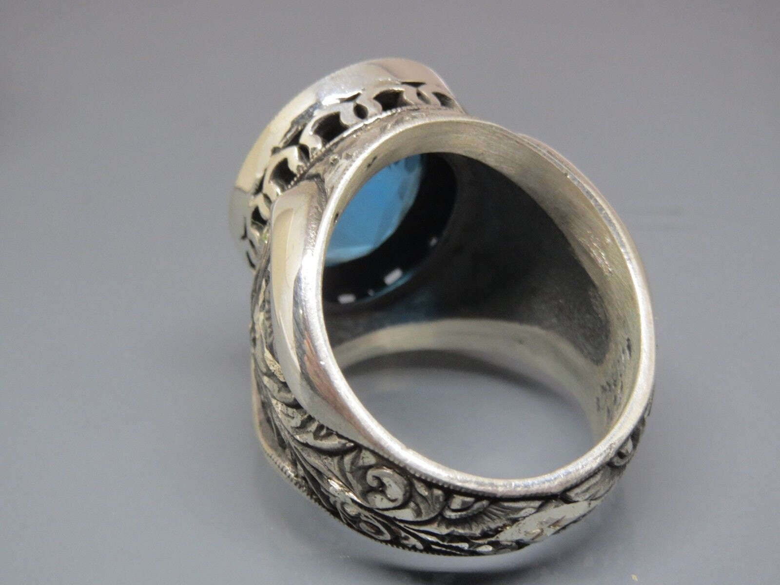 Turkish Handmade Jewelry 925 Sterling Silver Aquamarine Stone Men's Ring