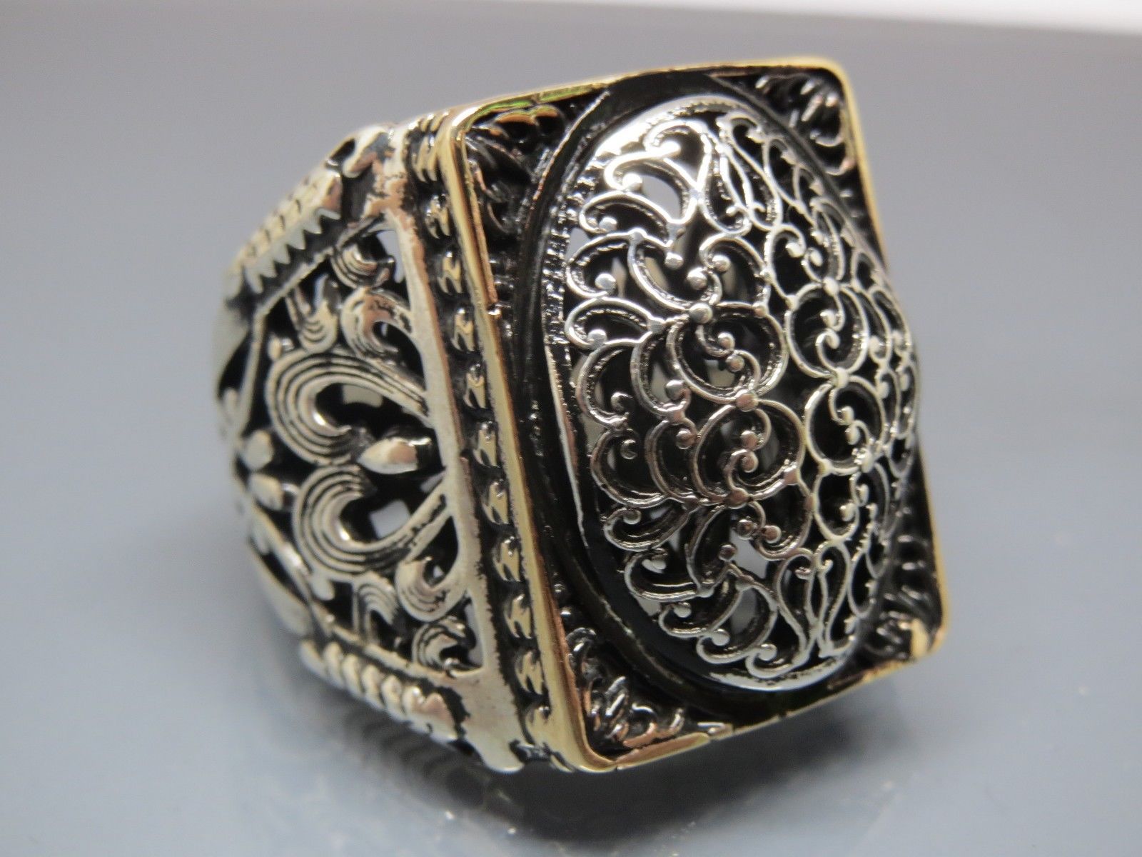 Turkish Handmade Jewelry 925 Sterling Silver Ottoman Design Men's Rings