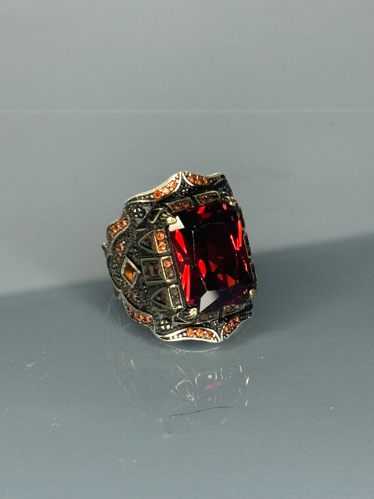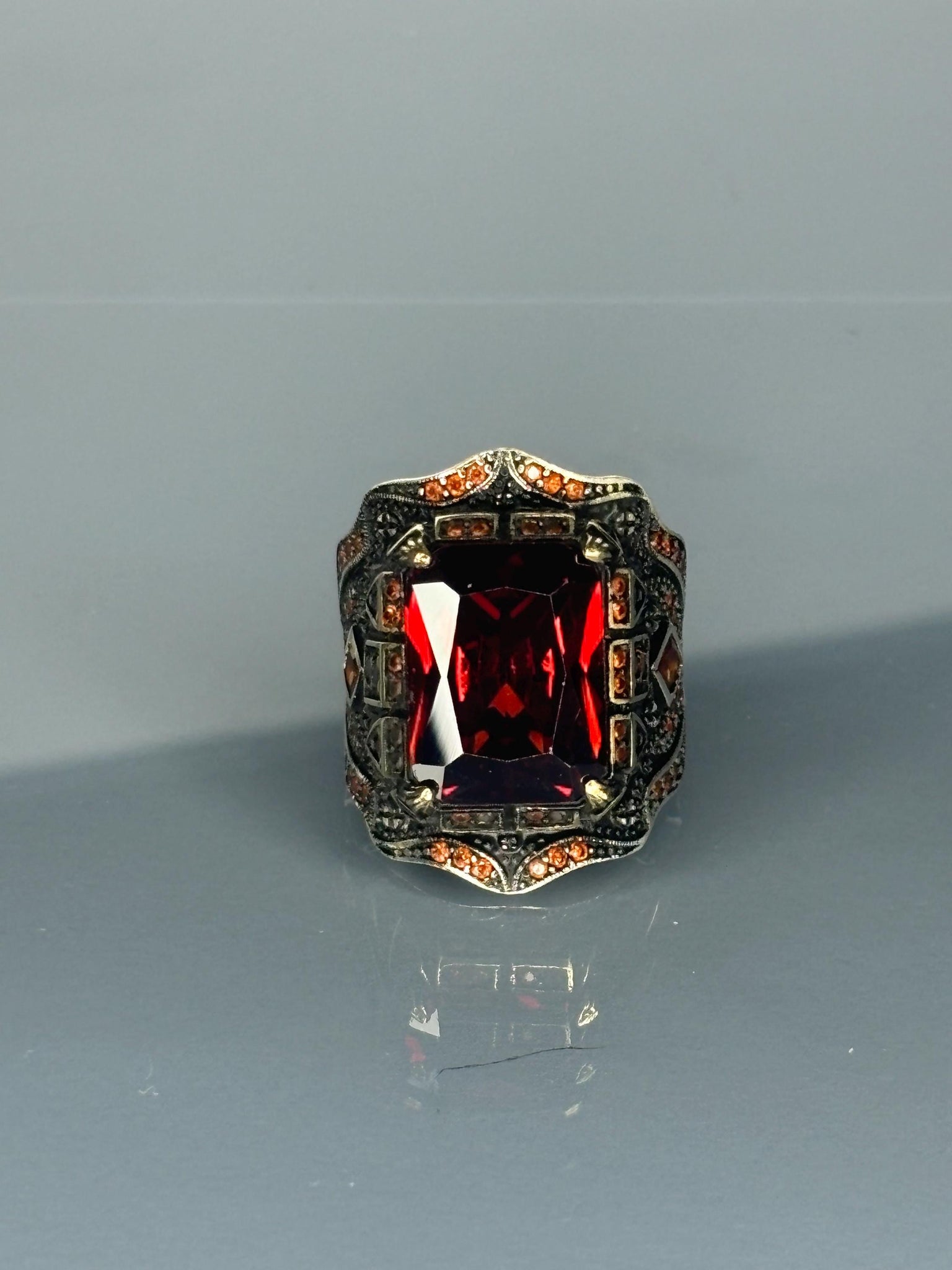 💎 Vibrant Ruby Red Gemstone: The large, captivating red stone is set to draw attention and add a splash of vibrant color to any outfit.