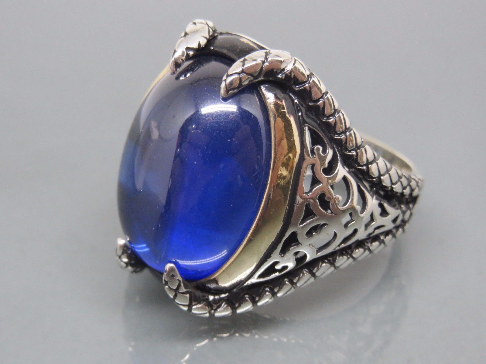 Turkish Handmade Jewelry 925 Sterling Silver Sapphire Stone Mens Rings