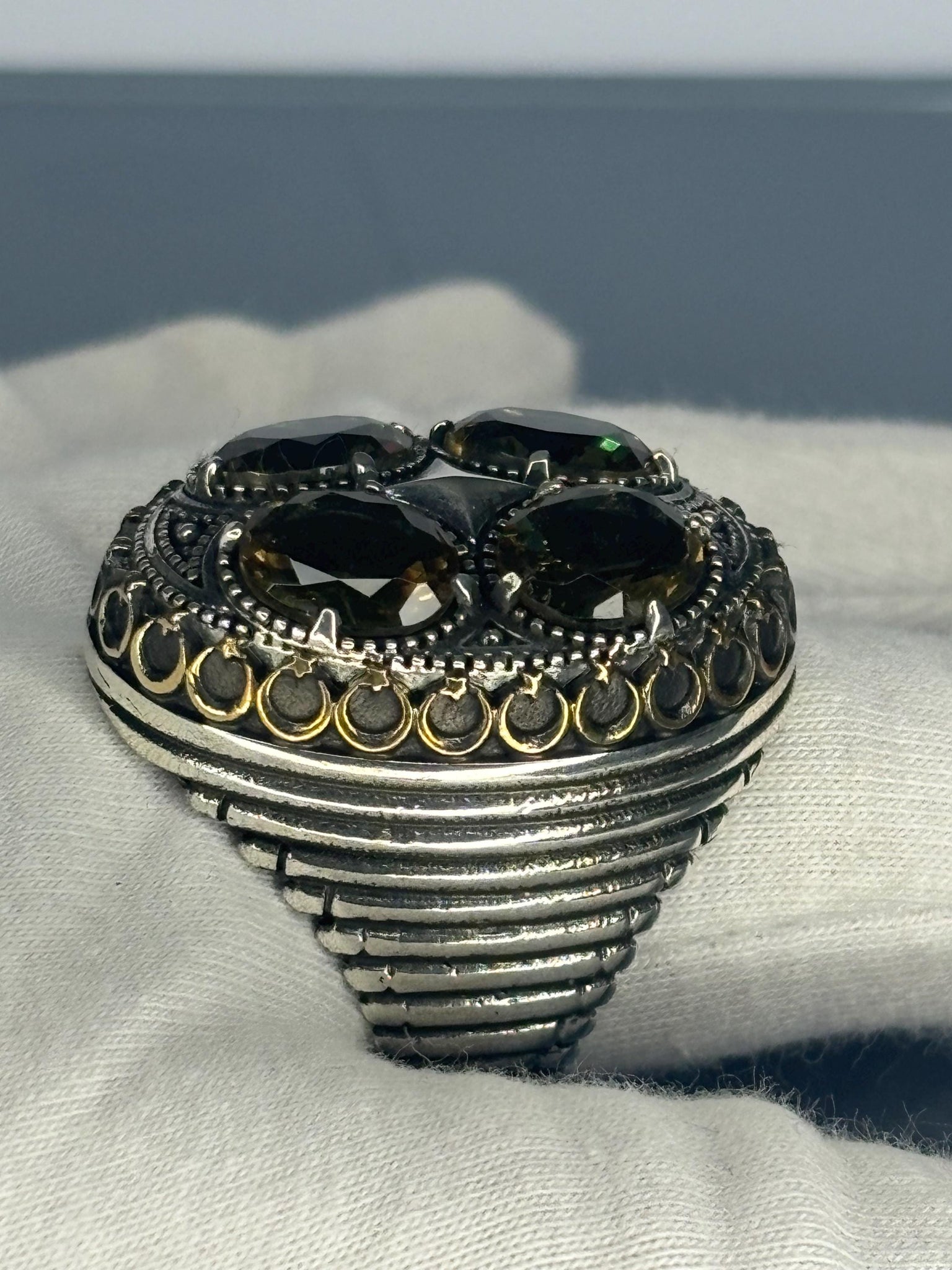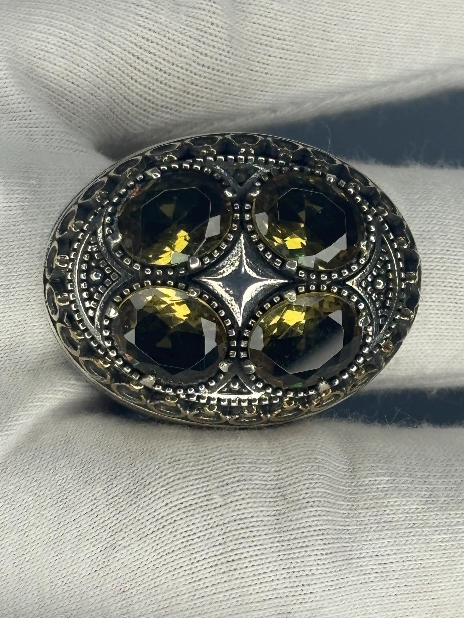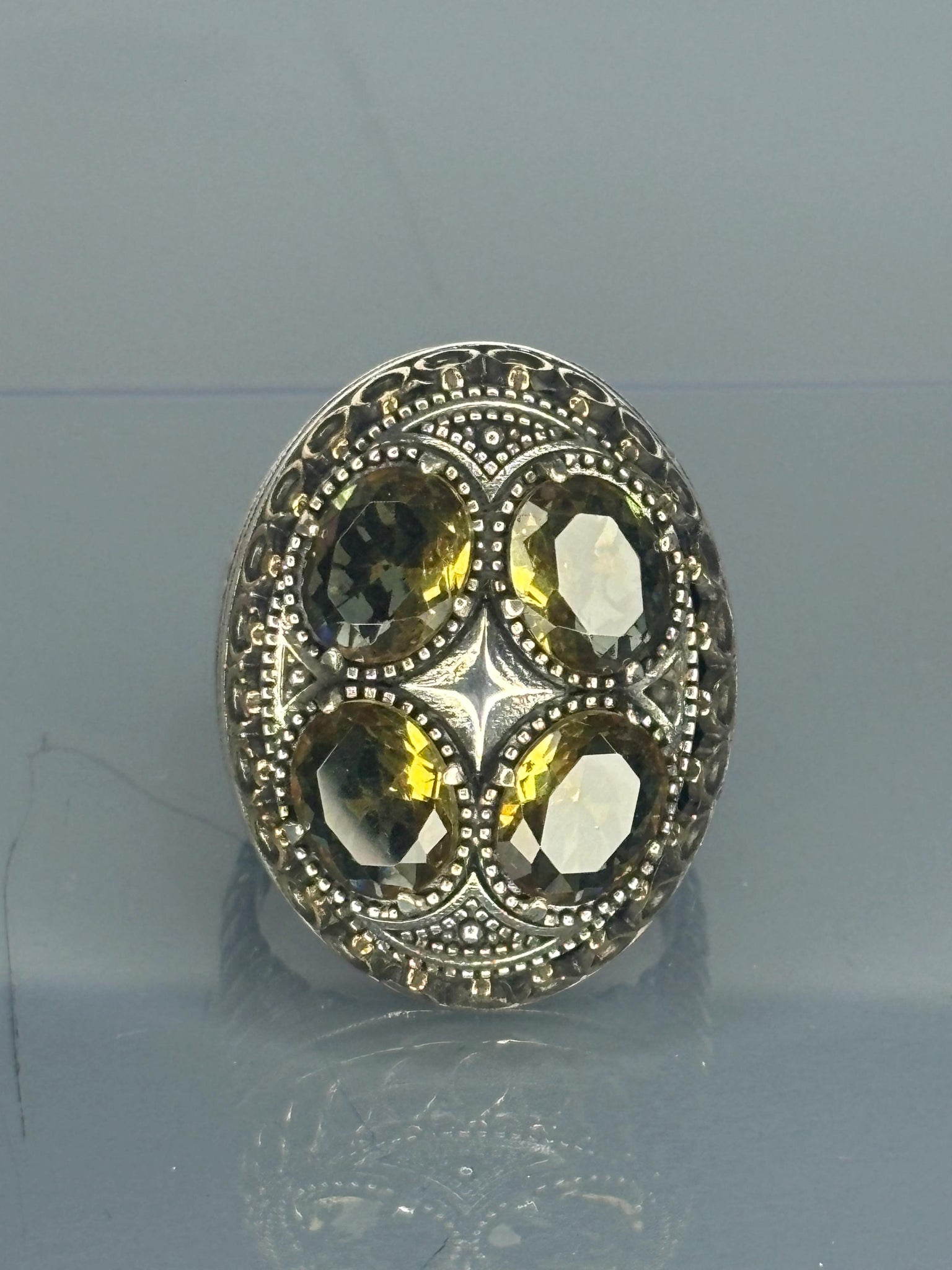 Sterling Silver Men's Ring: Peridot 4 Stone Ottoman Design, Vintage Statement Jewelry