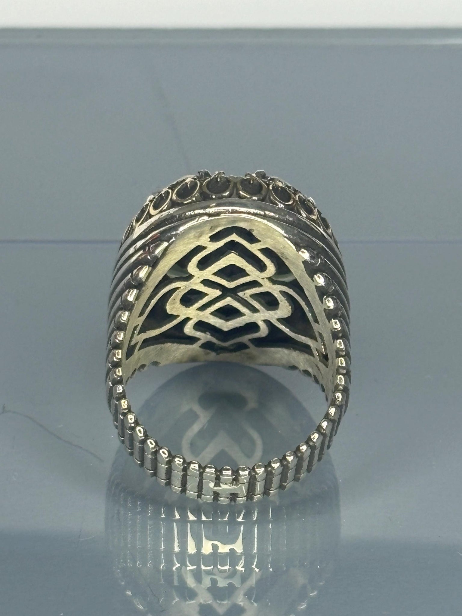 Make a bold statement with this exquisite 925 sterling silver men's ring, featuring four radiant peridot stones surrounded by intricate vintage-inspired detailing. This unique piece is perfect for adding sophistication to your style or gifting to someone special. 🎁