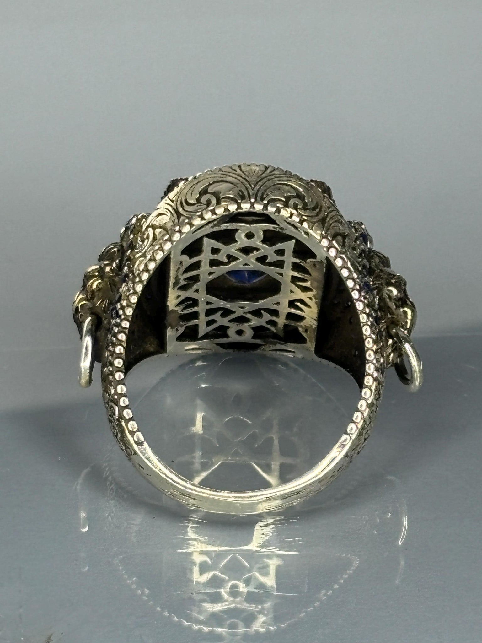 Vintage Sterling Silver Men's Sapphire Ring: Handmade Lion Design