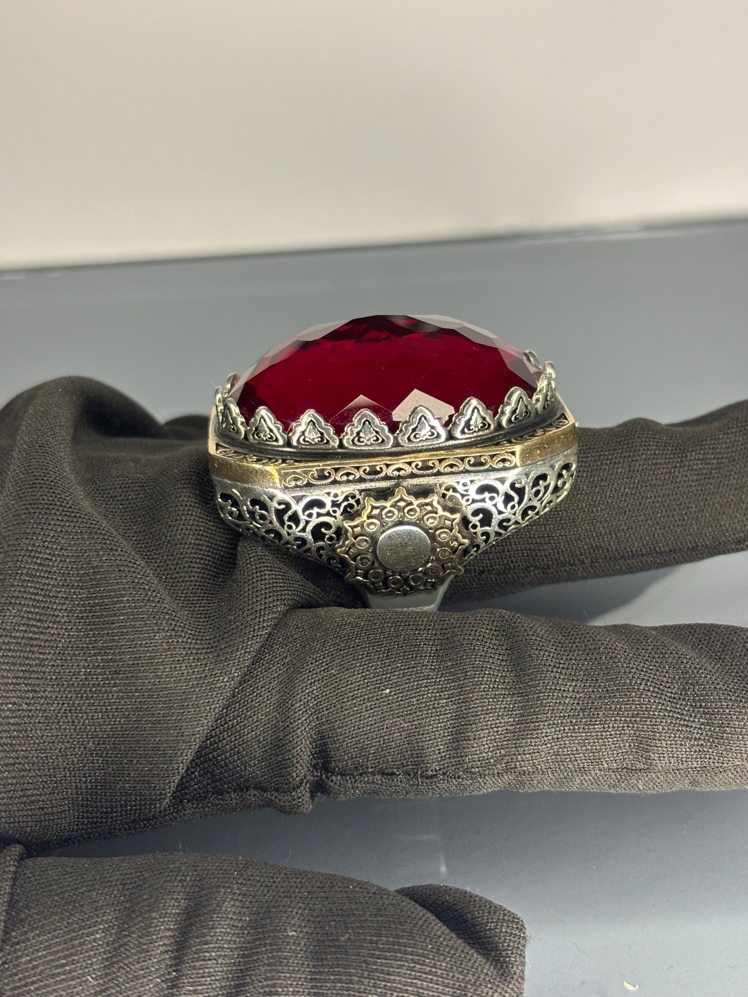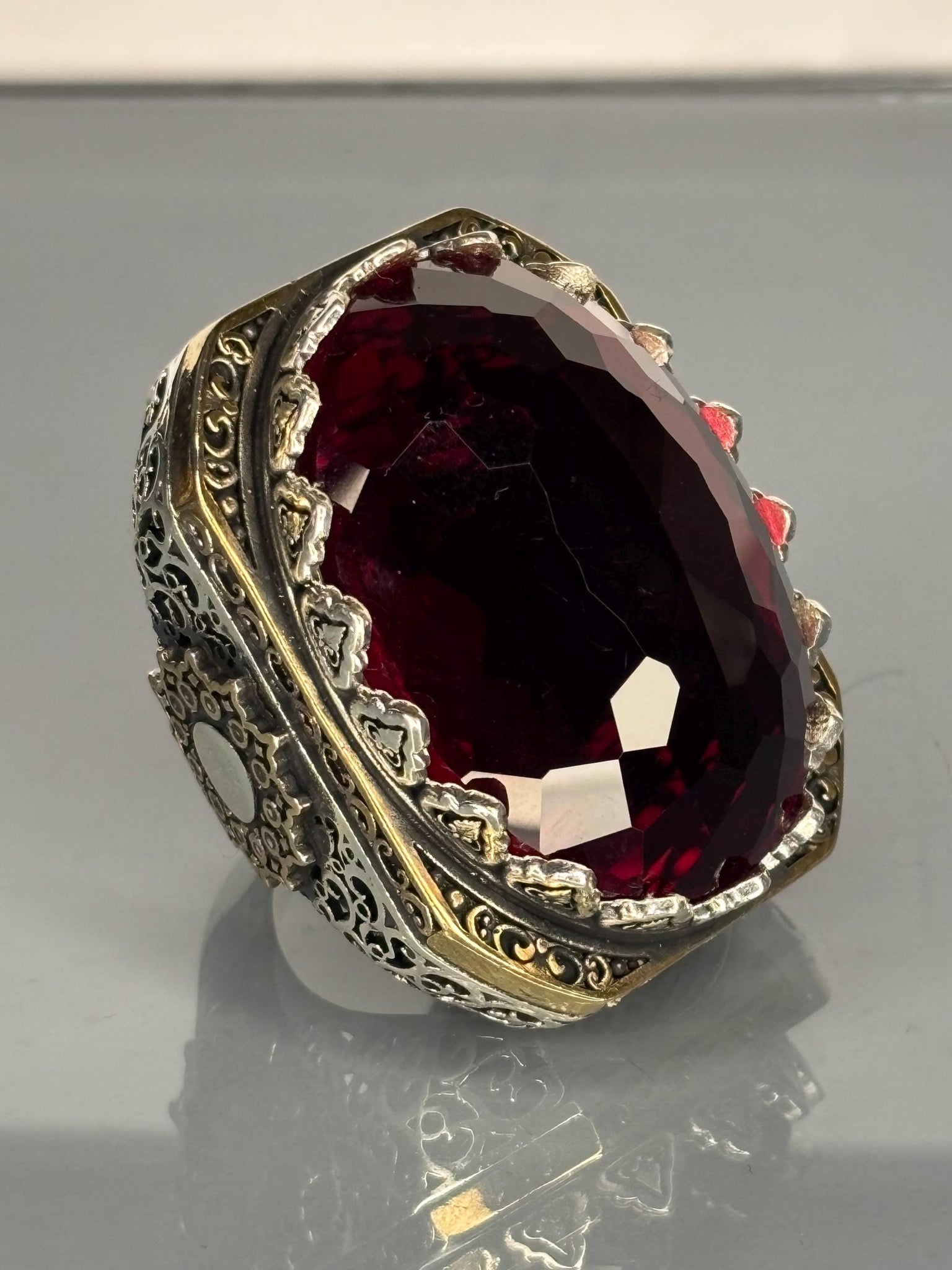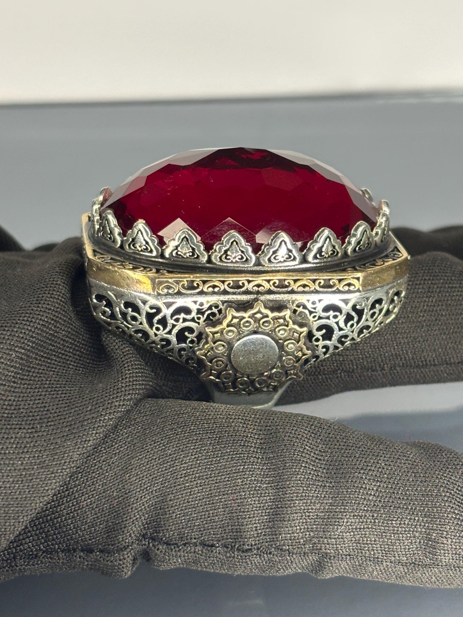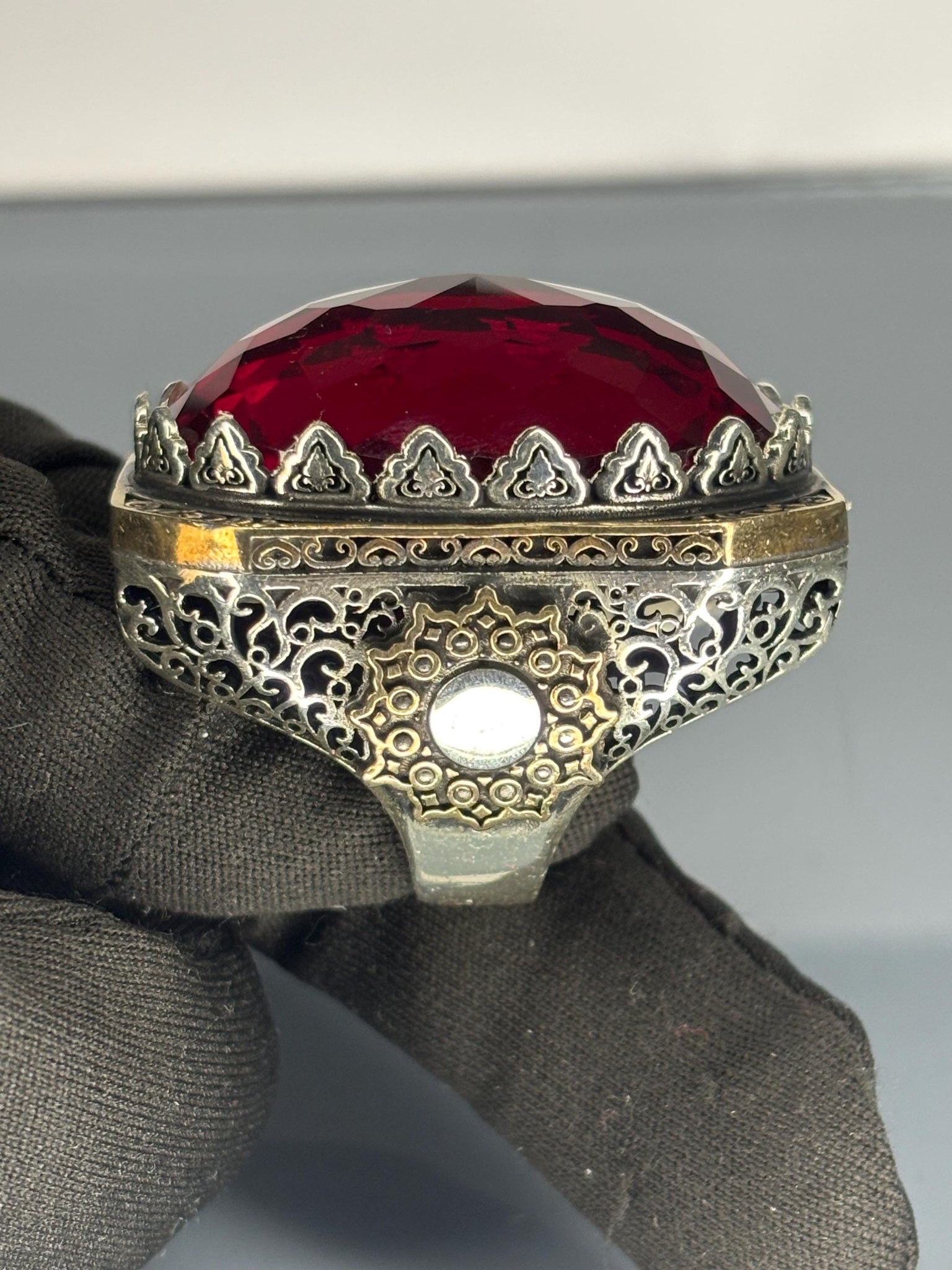 Make a powerful impression with this men's ring, crafted from 925 sterling silver and set with rich red ruby gemstones. Featuring an intricate vintage-inspired design with unique side detailing, this ring is a symbol of bold style and elegance. ❤️✨ Ideal for anyone who appreciates quality craftsmanship and classic luxury, this ring is perfect as a gift or a personal statement piece.
